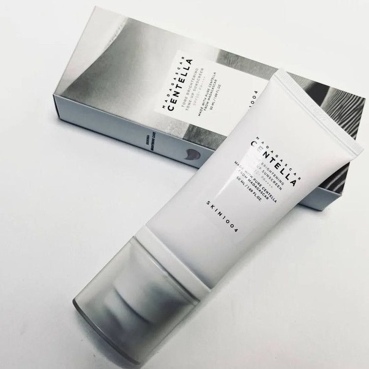 خرید ضدآفتاب ضد لک و روشنکننده تونآپ سنتلا SKIN1004 سبک، بدون سفیدی و مناسب پوست حساس